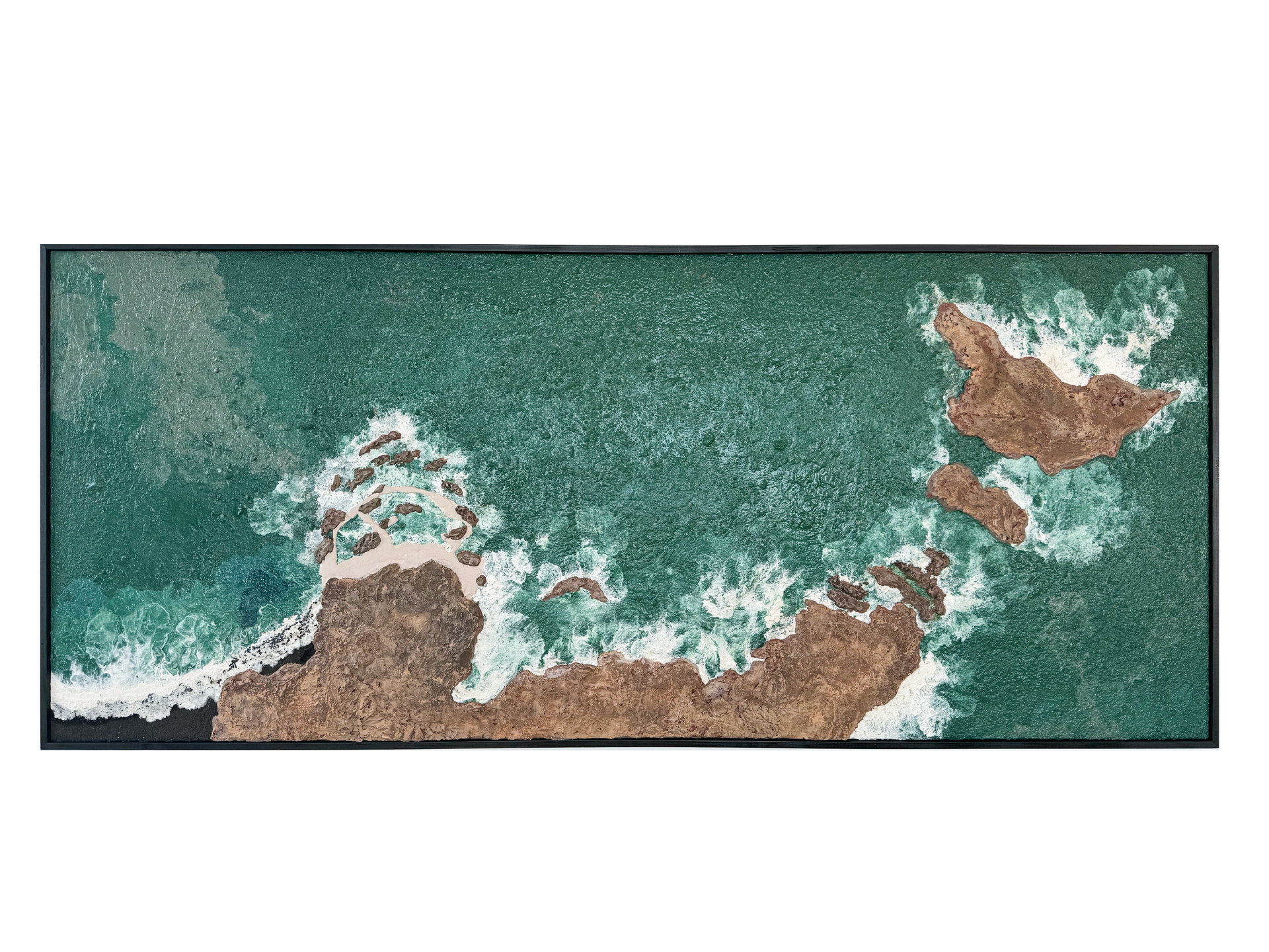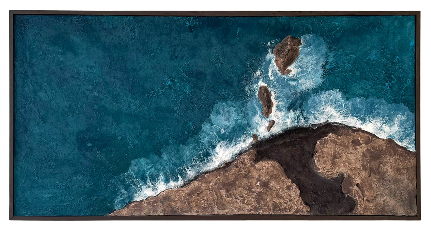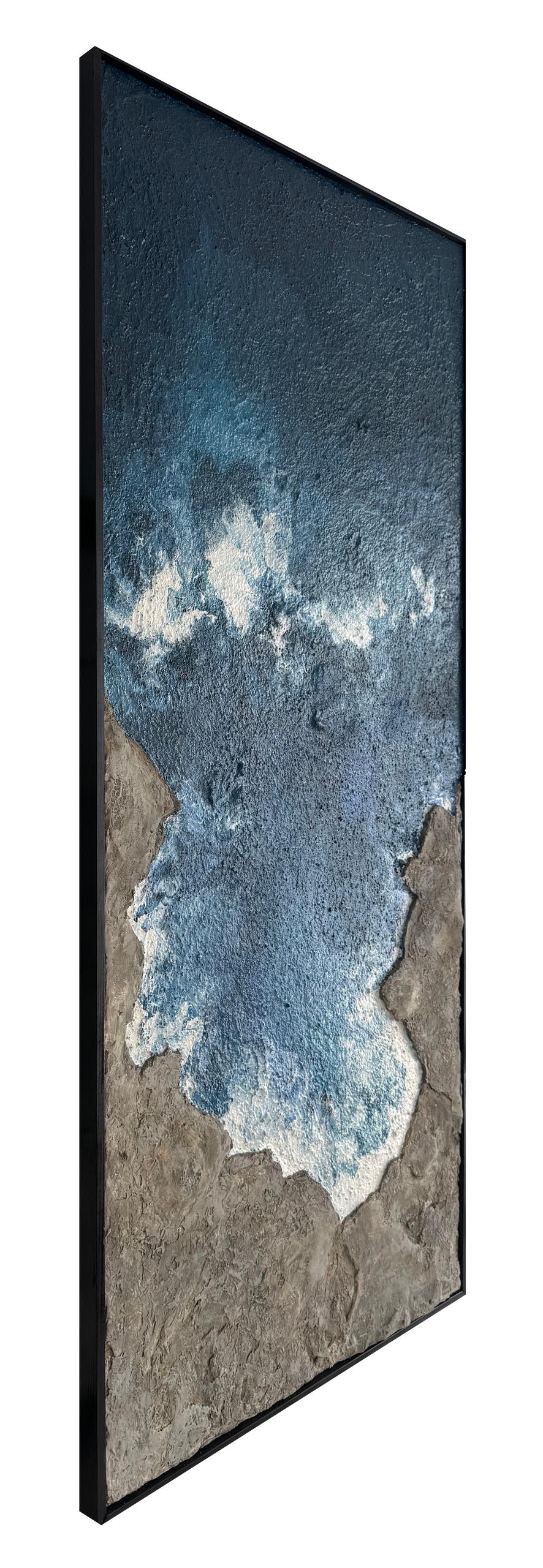 This large-scale work explores the dialogue between land and sea through a refined balance of texture, color, and movement.
