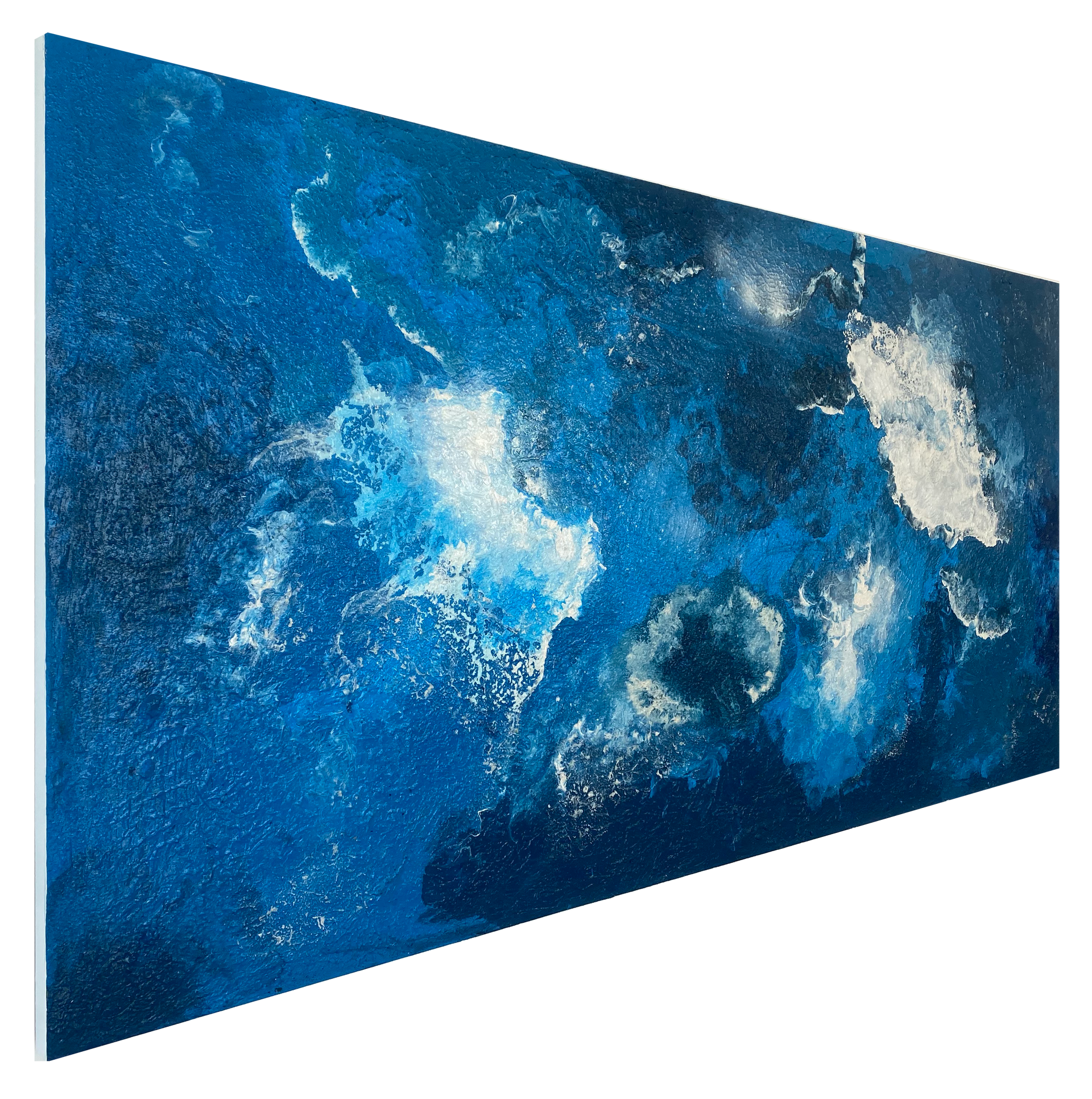 The collectors, based on the beautiful island of Madeira, envisioned a work that would echo the vastness and atmosphere of their coastal surroundings. Their wish encouraged me to step into a new creative space, embracing scale and simplicity in a way I never had before. The result is a stunning, immersive painting that brings the shifting character of the sea directly into their home.
