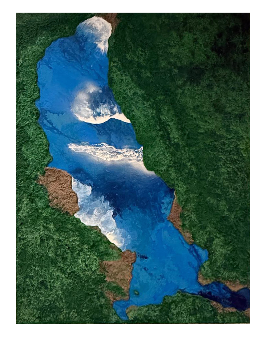 Tegernsee is an aerial landscape painting inspired by the distinctive outline of Lake Tegernsee in Bavaria.
